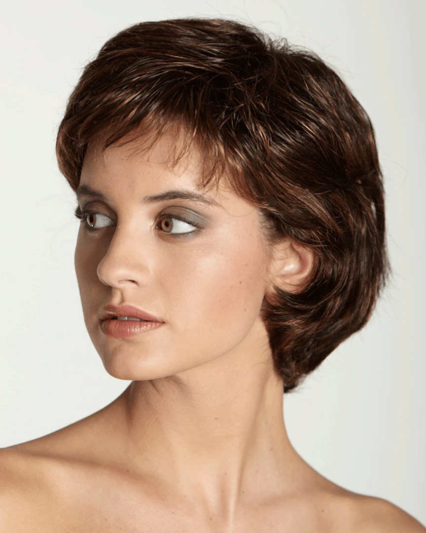 Jennifer by Aspen is remarkably impressive. Showcasing a medium layered top and undercurled bottom pieces, this voluminous wig style is flirty, fancy and fun all at once.