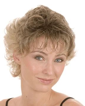 Sarah by Aspen has different curl lengths & a natural looking top.