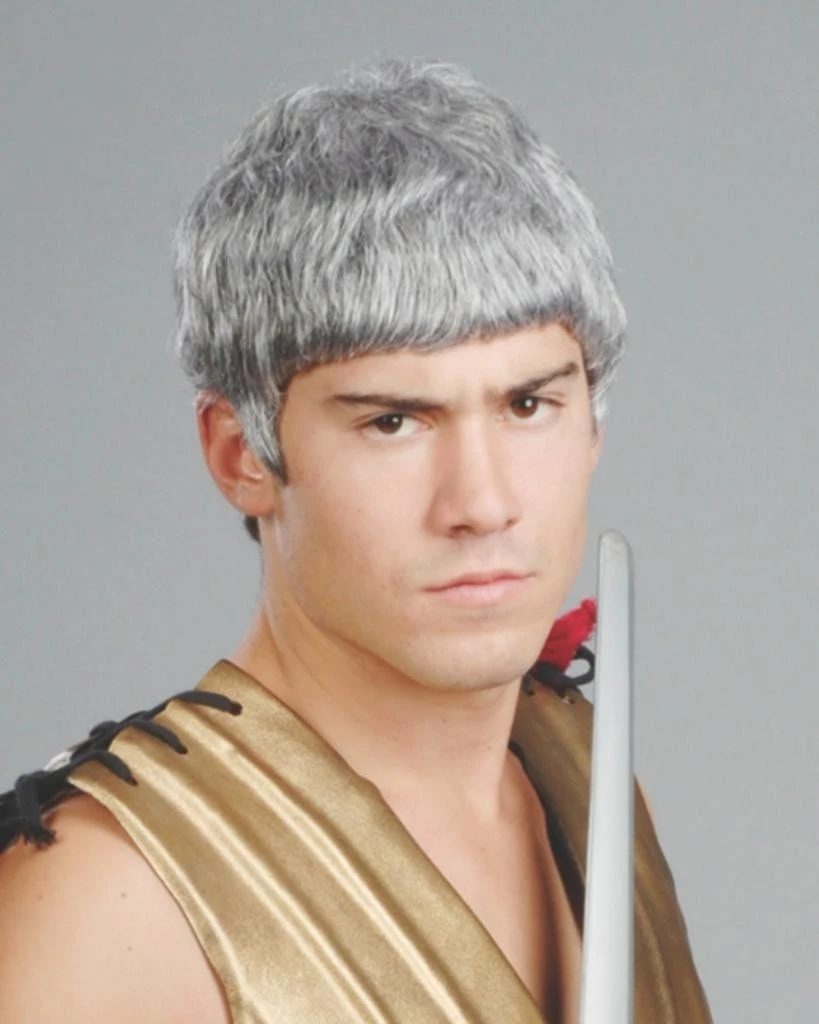 The Enigma Caesar Wig is designed in the style of William Shakespeare’s tragic hero Julius Caesar. It uses 100% synthetic fabric but feels and looks exactly like human hair. It is very comfortable to wear. The Enigma Men’s Caesar Wig comes in a short length and average cap size. The piece covers the entire crown beautifully and fits perfectly. The piece is very soft and lustrous.