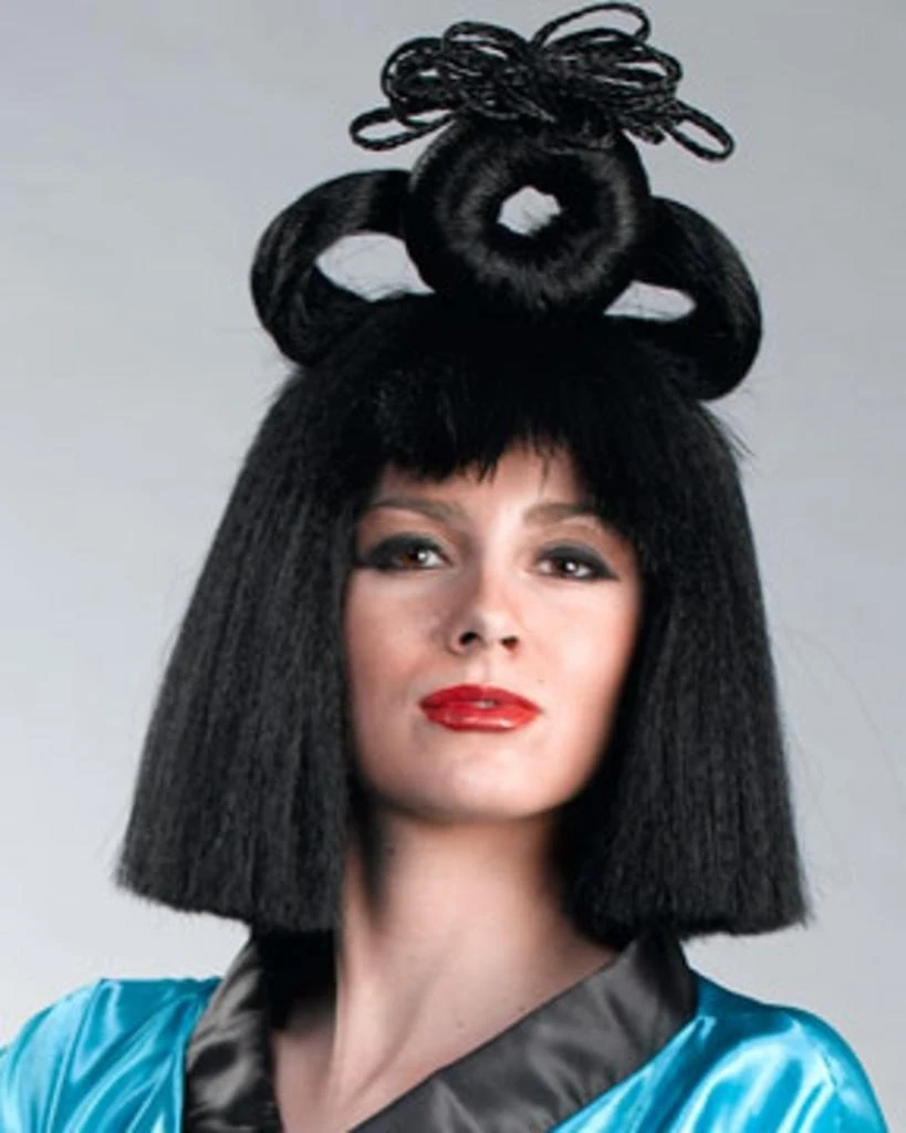 The Enigma Women’s Deluxe Geisha‌ wig is available in black, which is designed very intricately. It is a costume wig defined on two divisions; with the base in straight form extending up to the nape, the part above it designed in a circular bow like structure that is topped beautifully. The Enigma Women’s Deluxe Geisha‌ wig is made up of pure synthetic fiber that feels very lustrous and soft. The wig is quite light weight and covers the entire crown section. The design, style and comfort make it a perfect costume piece.