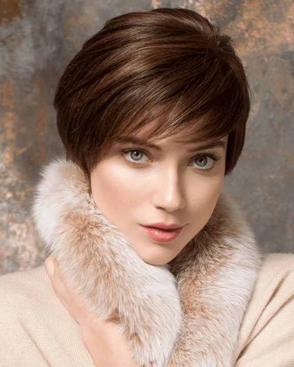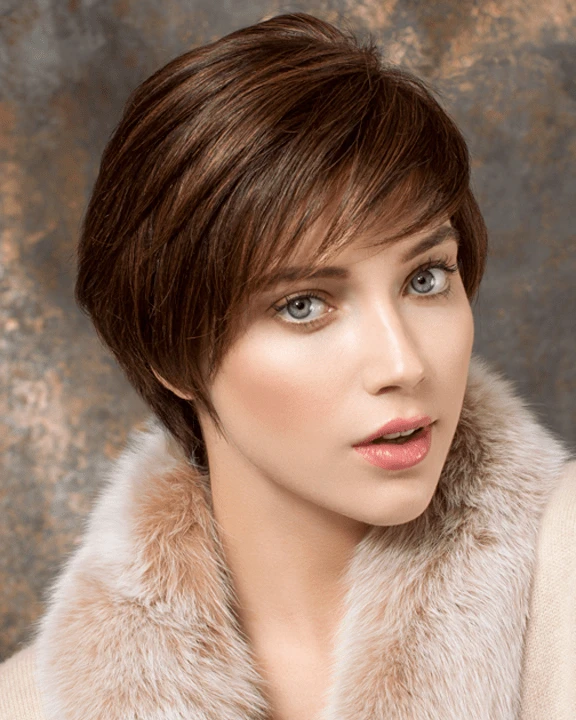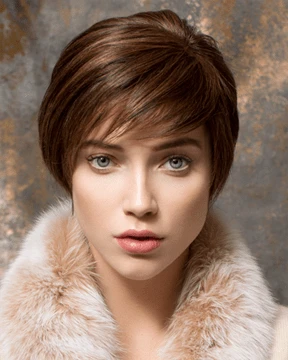 Award wigs by Ellen Wille is very chic, short Remy human hair wig. Precision cutting is the key to the beautiful shape. The layers around the face can be worn multiple ways including parsed and to the side or pushed forward. The layers at the nape of the neck lay flat.