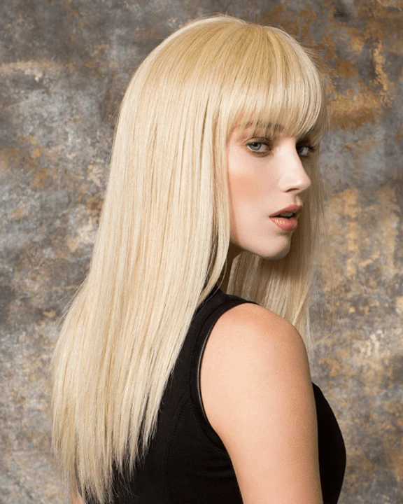 Cher by Ellen Wille is a long, edgy, and super straight synthetic wig with full bangs. The synthetic fiber is of the highest quality and has a natural density that looks and feels like real hair. The monofilament crown is hand-tied and sheer to create a natural looking part. You can have the full bang trimmed by your stylist or comb it to the side to change up the look. Cher is a part of the Ellen Wille Hair Power collection.Â