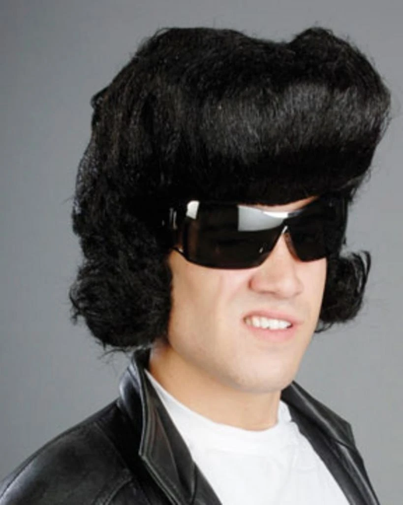 70’s King Elvis by Enigma. This is an exaggerated Elvis Presley costume wig from the 1970s