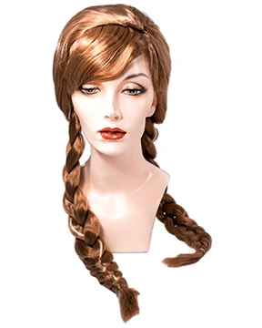Anna from Frozen. Â Comes in auburn with a white stripe of hair. Ana