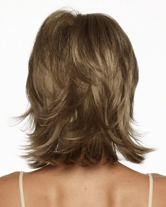 Mid-length styling with soft layers give this style a stunning fashion forward appeal. Â With slightly flipped up ends and face framing angels this is a fashion must for women of all ages. Â Lace front construction allows you style it back off your face or pull the slightest bit of fringe forward to better frame your face.