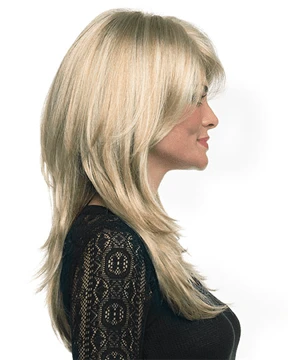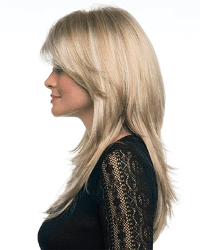 Brooke by Envy offers our mono top lace front construction on this long sultry and sexy styling.  Long flirty bangs can be side swept or worn off the face while soft angles from the face. Lightweight and luxurious this mono top construction suggest the fibers are growing straight for your own scalp.