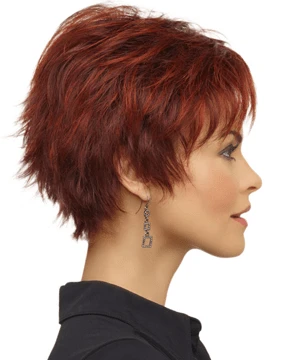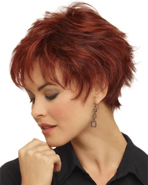 Genny by Envy brings a whole new meaning to sassy and spunky styling. Â The soft layers through-out the top allow for that extra volume. Â While the wispy fringe at the nape give that tapered finished appearance that will have people turning heads. Â Mono top construction gives the illusion is the fibers growing right from your own scalp.