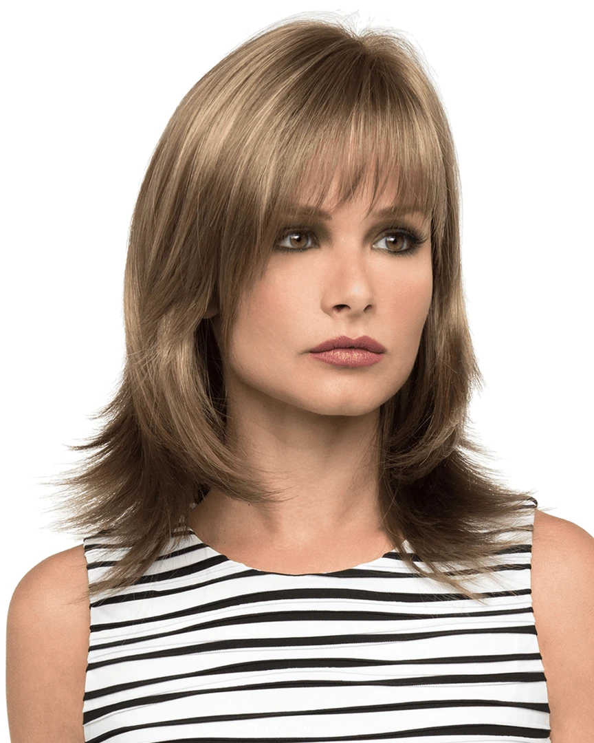 Gigi by Envy Wigs has long, gentle layers, flared ends, and wispy, face-framing bangs, Gigi is sure to turn heads in neighborhood and nightclub, alike.