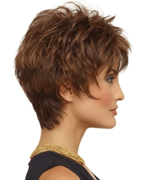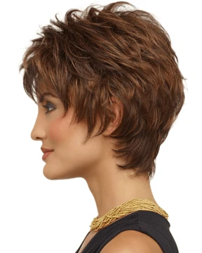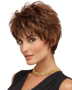 Kitana by Envy is spunky, textured and exhibits layers galore! Â With its tapered extended nape Kitana offers a soft hugging neckline. Â Razored edges that frame the face give that deconstructed styling for today’s style conscious women. Â Mono top construction allows flexibility is styling so that you can add a little lift with your favorite styling products or comb it from side to side to suit your individual needs.