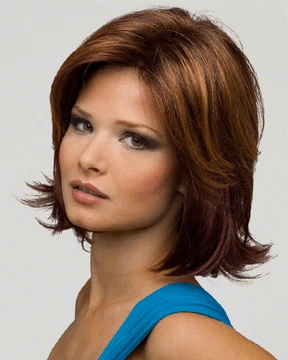 Taylor by Envy gives a new twist to a fashion staple in this shoulder length layered bob style. Â The soft layers can be combed to either side or off the center by utilizing the finest in lace front technology and hand tied features with this undetectable hairline. Â The silhouette offers razored edges and flipped up layers in this fashion forward style. Â Timeless and sophisticated styling only by Envy.