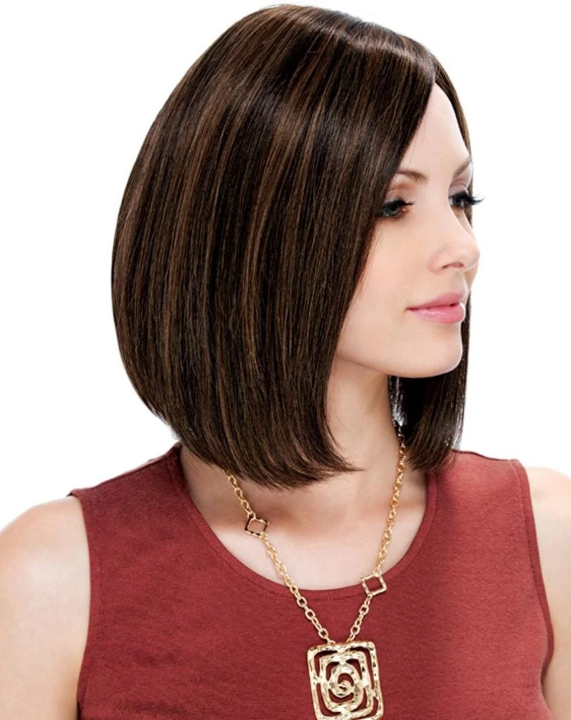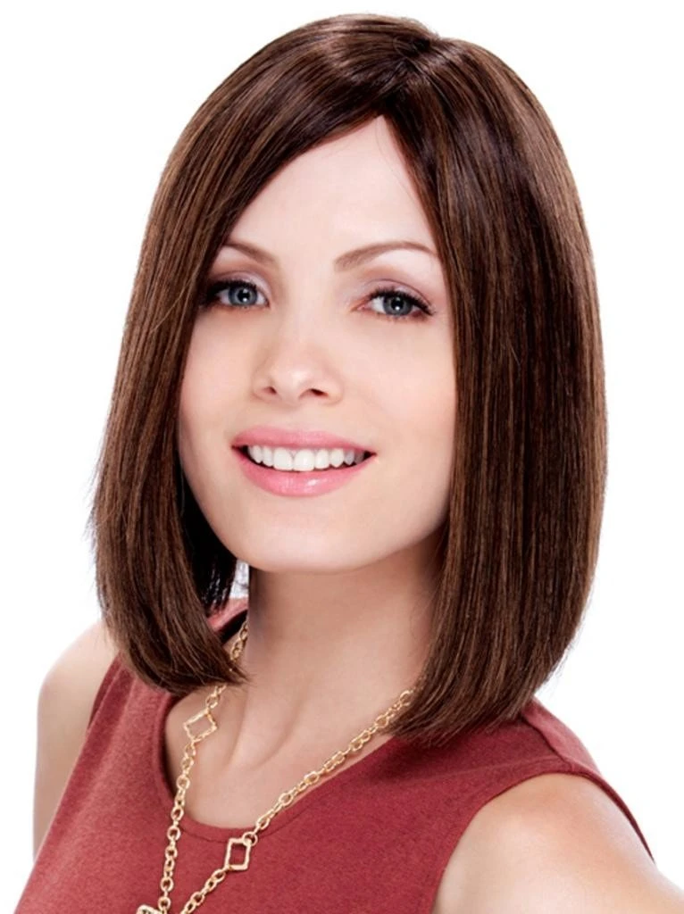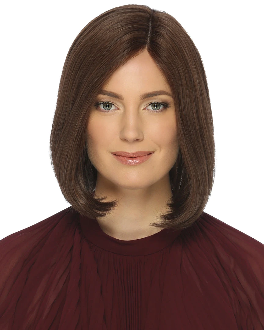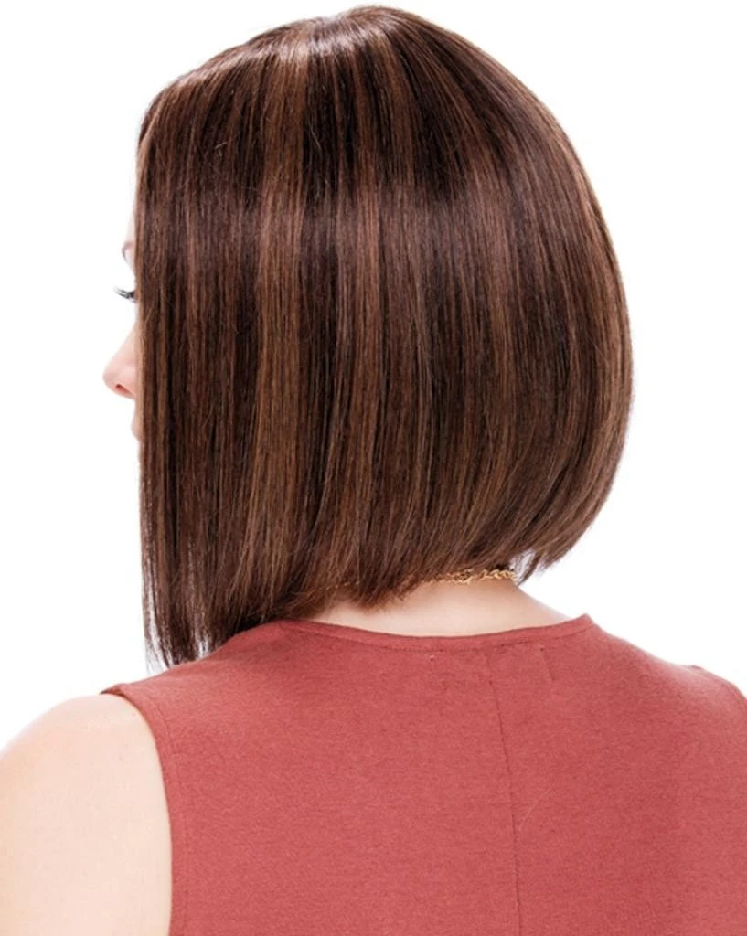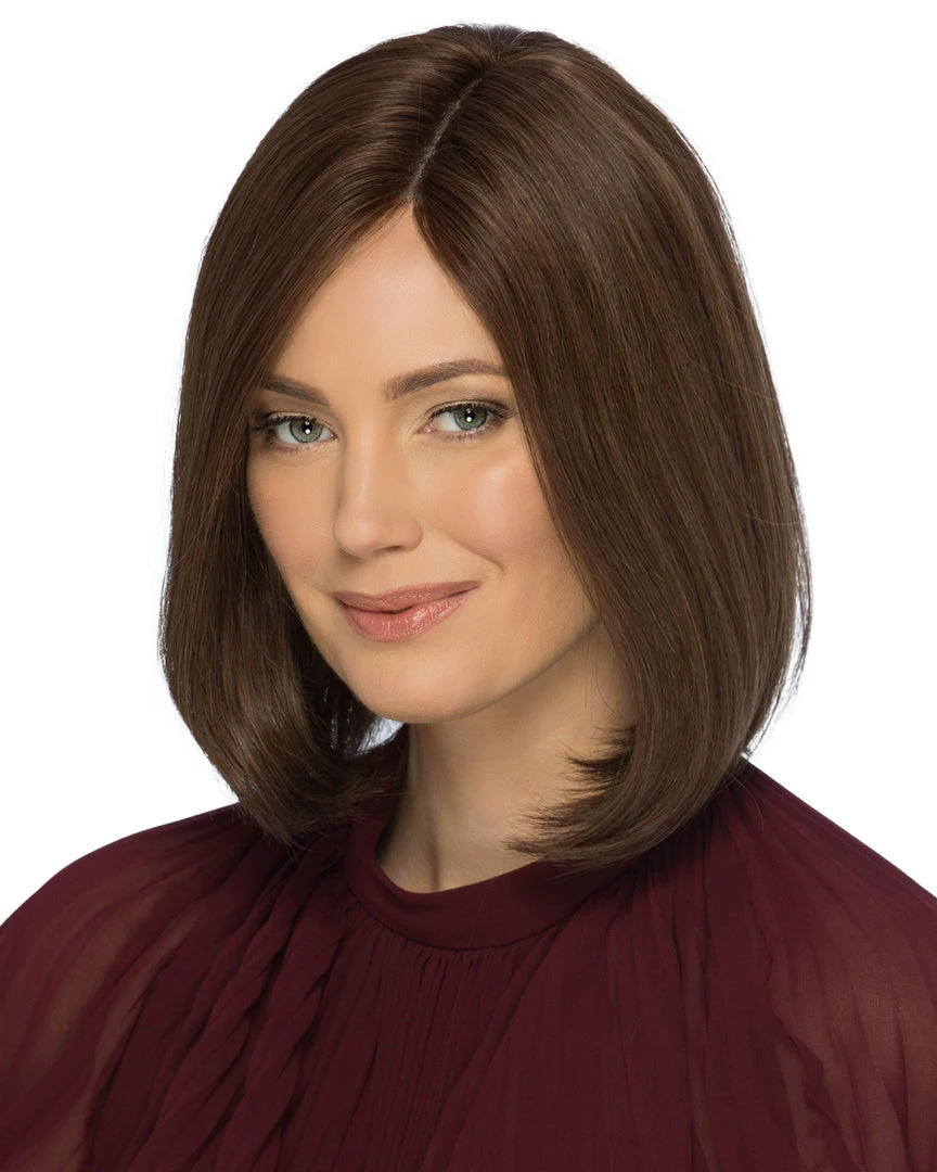 The Heaven wig by Estetica Designs is a mono top with 100% hand tied back.  It is long layered pagecut, made with 2.5″ – 11.5″ remi hair.