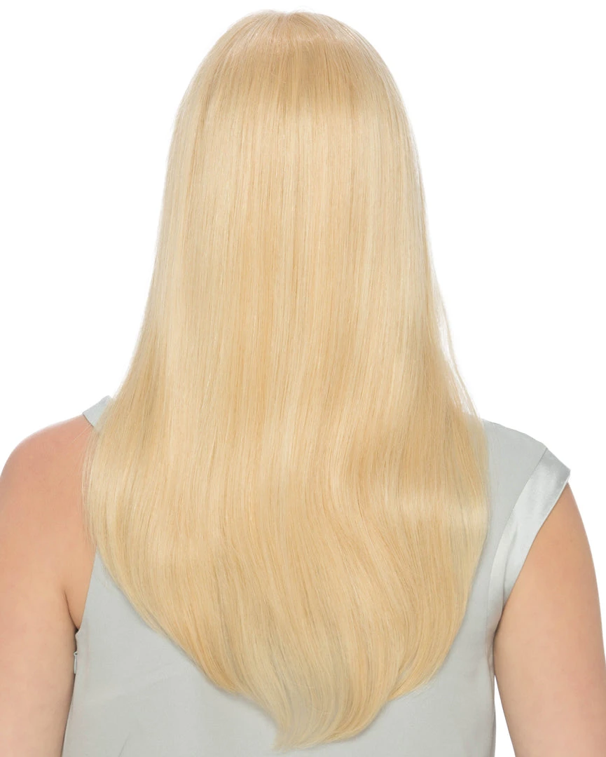 The Victoria by Estetica Designs is a long, smooth remy human hair wig. With a mono top and 100% hand-tied back, she is lightweight and breathable. Victoria also features an extra long lace front for even easier customization.
