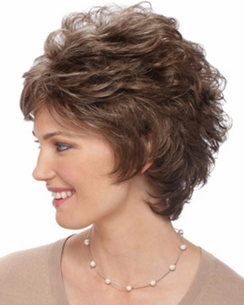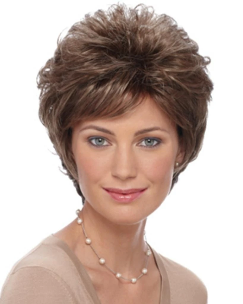 Katie by Estetica Designs is a short layered cut with soft bangs and curls.