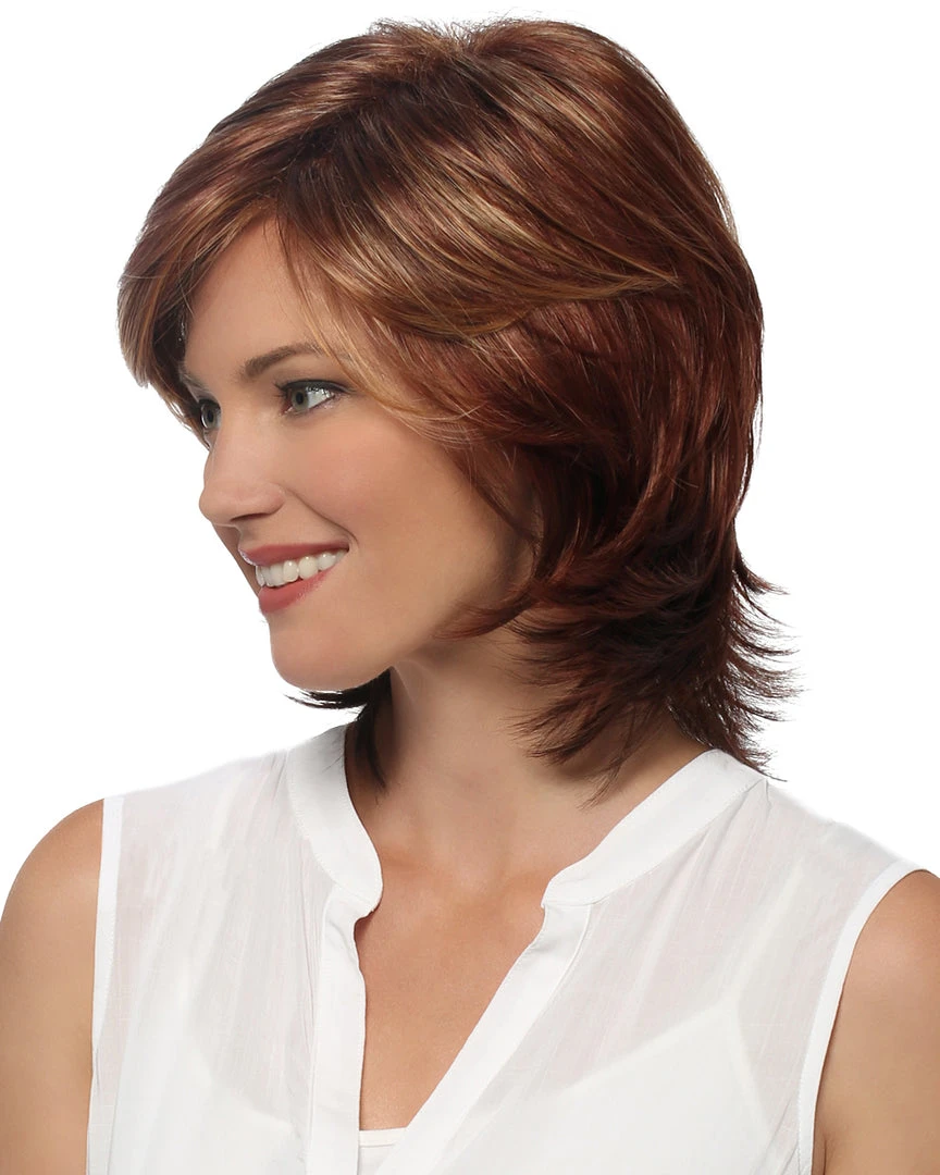 Natalie by Estetica Designs has beautiful luscious layers and soft delicate bangs are what make Natalie a timeless beauty. This style is a great look for anyone with an oval, heart, pear or oblong shaped face.