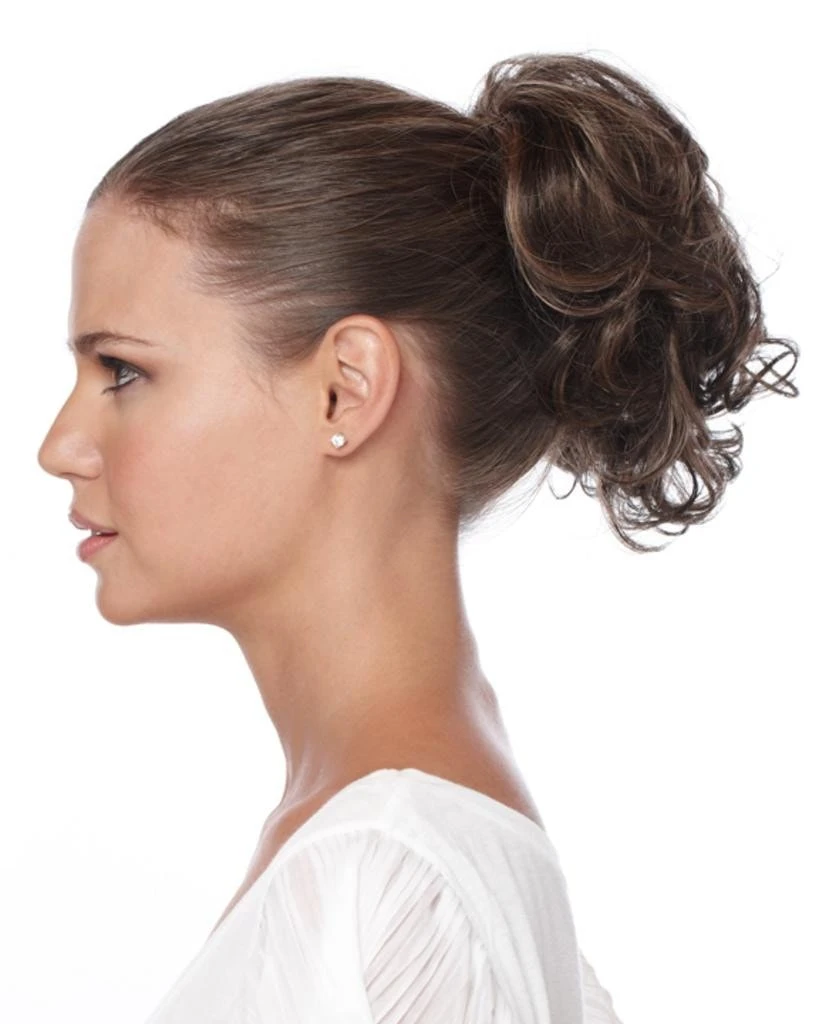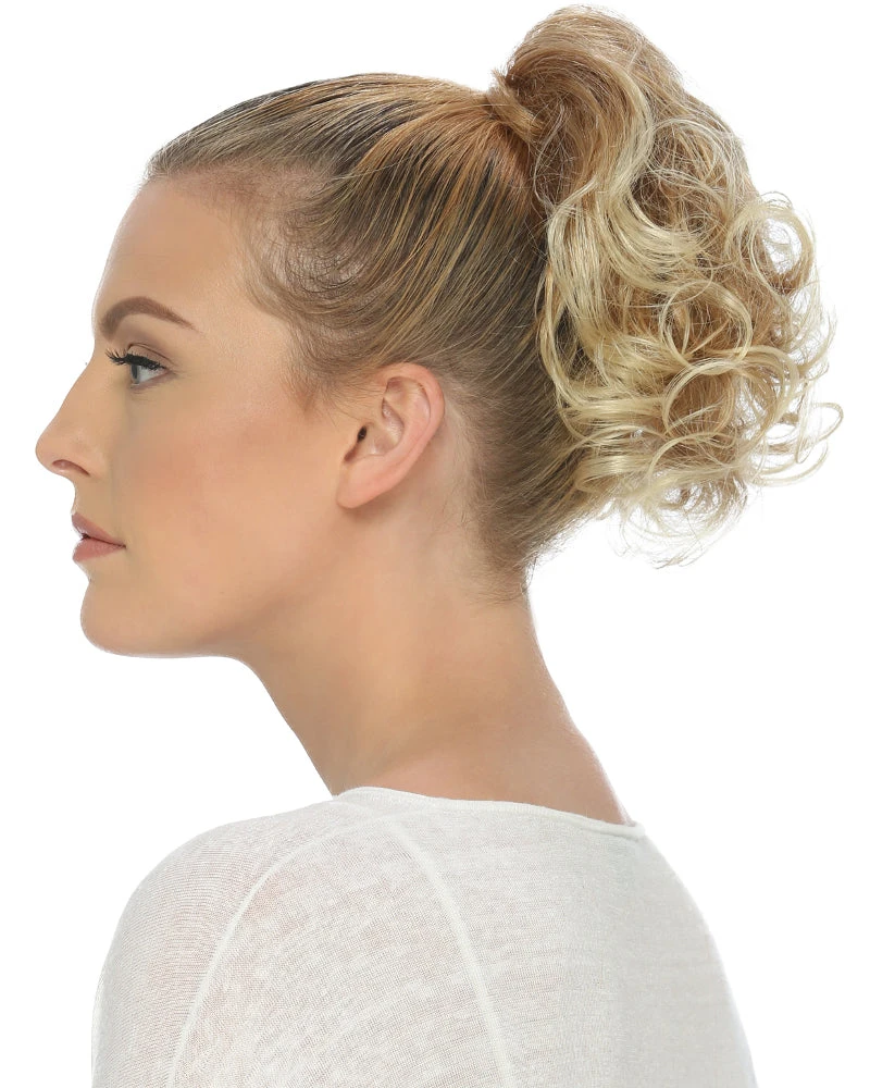 Ponytail Spring Clip WCLC9 by Estetica Designs. Add length and volume to any hair type with the Ponytail Spring Clip. This style features 9″ loose layered curls attached to a spring clip allowing for a quick and easy way to add some fun to your updo.