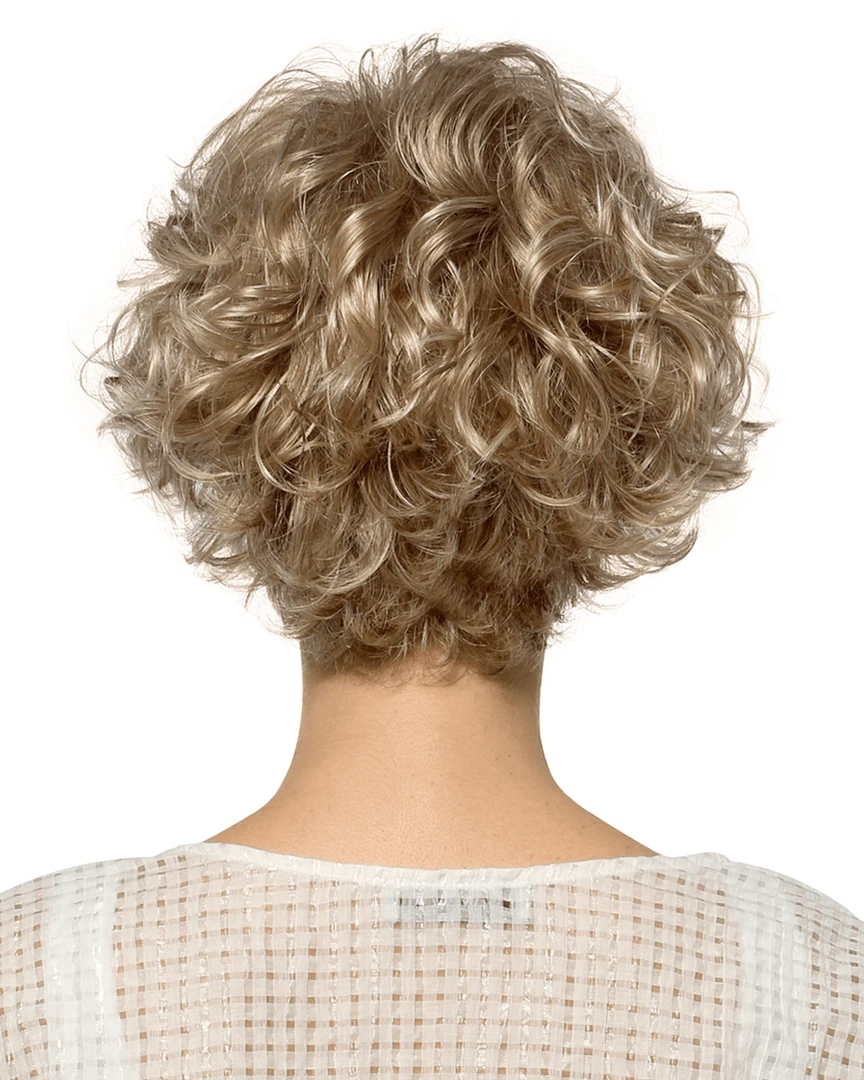 Ready to make a statement? Meg by Estetica Designs is the perfect style for you! With her beautiful loose spiral curls, this layered bob looks great with any face shape.