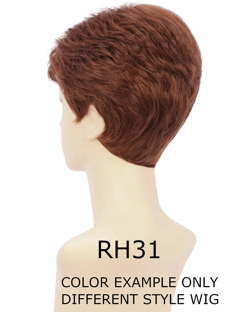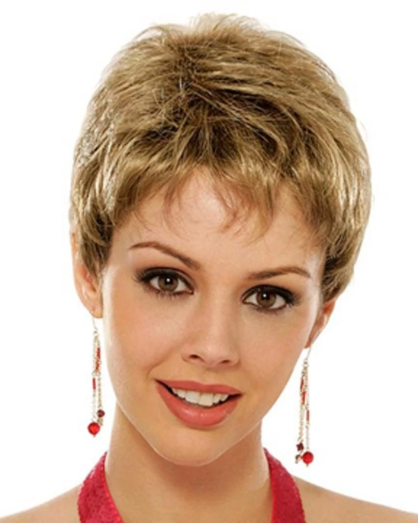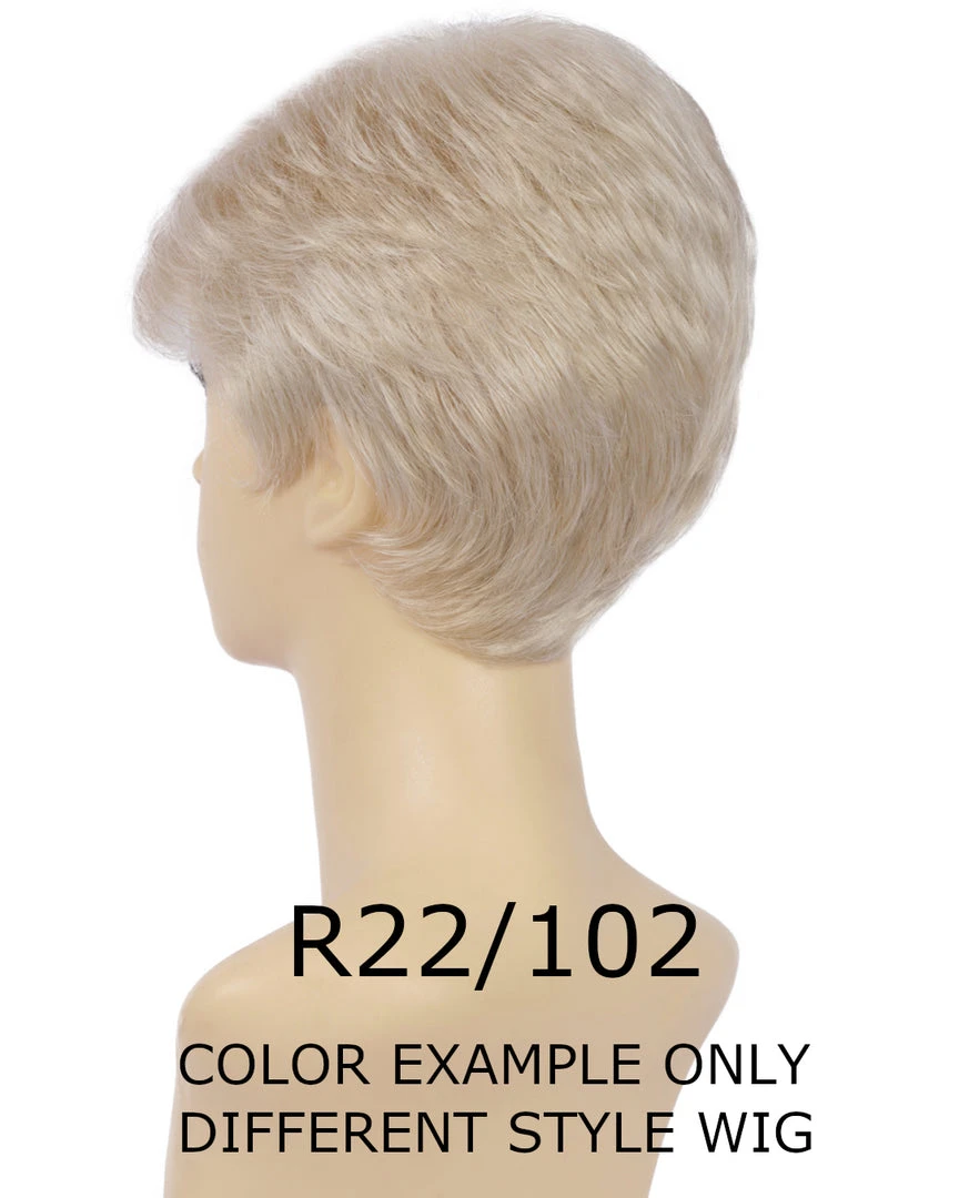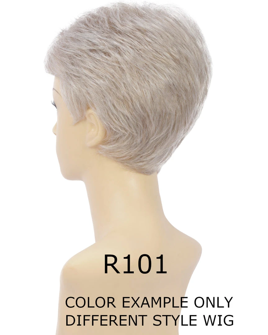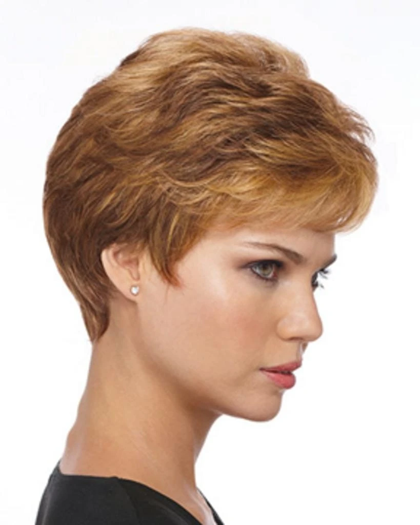 Petite Nancy by Estetica Designs is a short pixie cut with a tapered neckline.