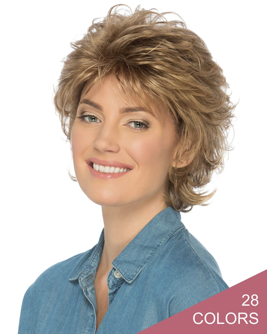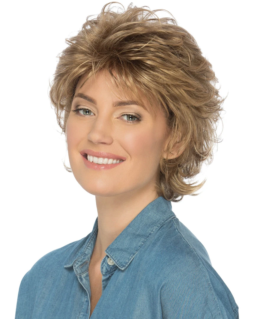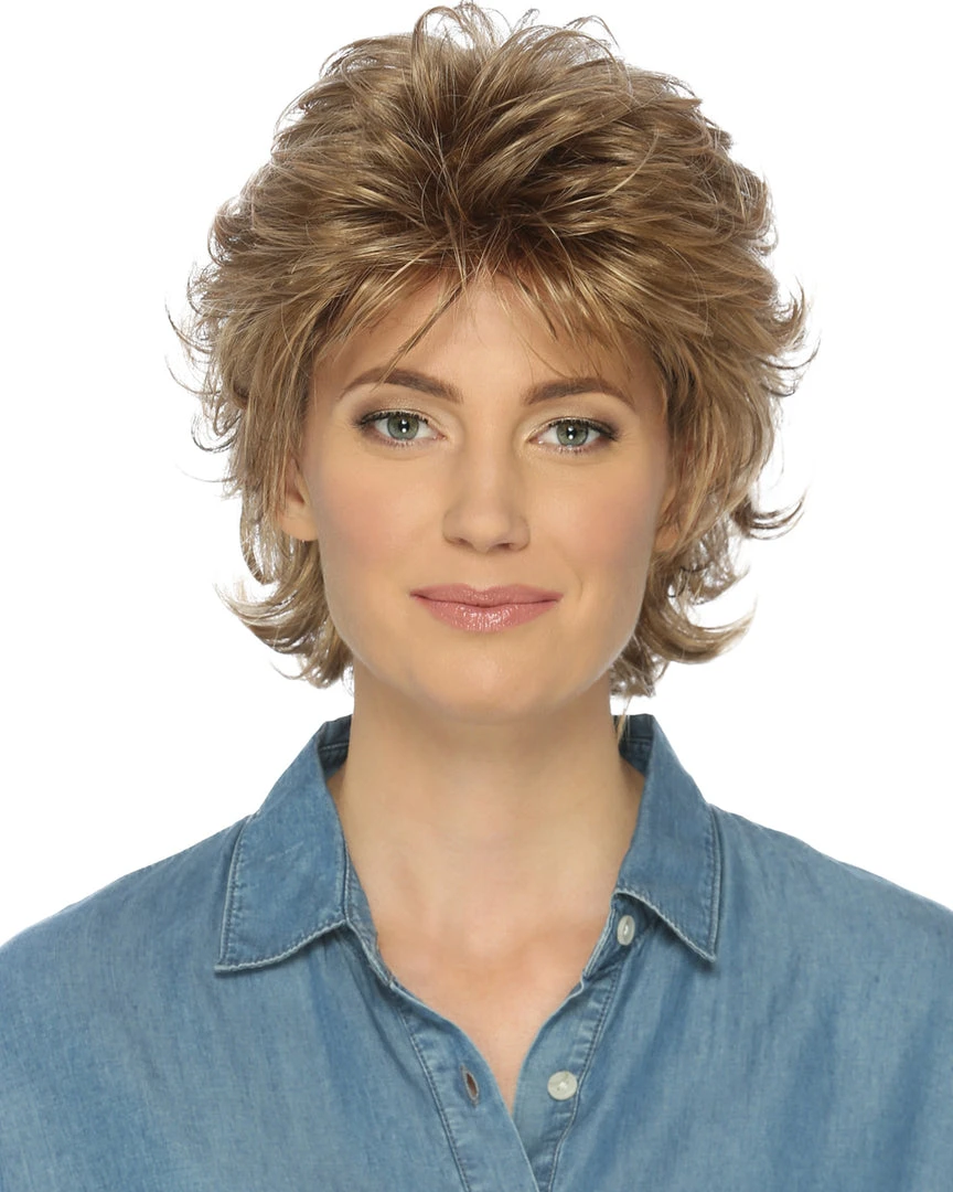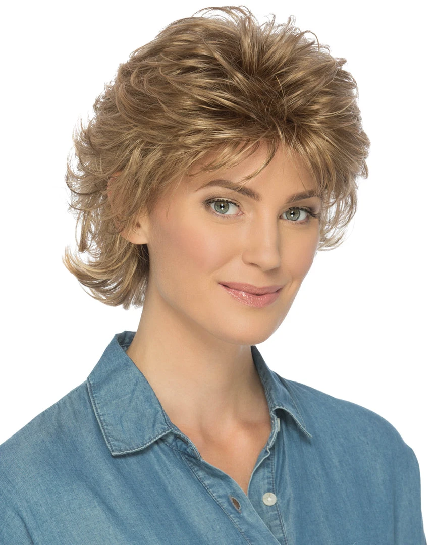 Shelby by Estetica Designs has loose curls that give this middle length shag some lift.