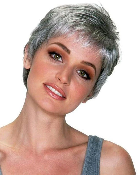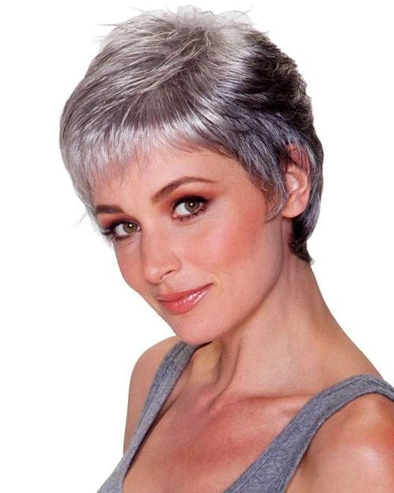 Feather Lite Monofilament wig by Belle Tress in a partial monofilament design. This partial monofilament uses a thin and breathable lace on which hair fibers are woven. A classic petite cut with an ultra light-weight feel. This wig evokes a modelesque minimalism for a simple clean expensive look.