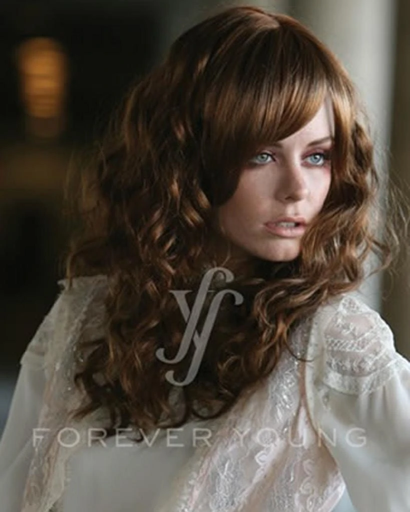 Roll With It features long, full-body hair with dazzling volume. Full layered curls all around and bangs which you can part, create an elegant, fashionable look. Like all Forever Young Wigs, Roll With It is made from 100% Kanekalon Heat Friendly hair fiber and includes simple care instructions.