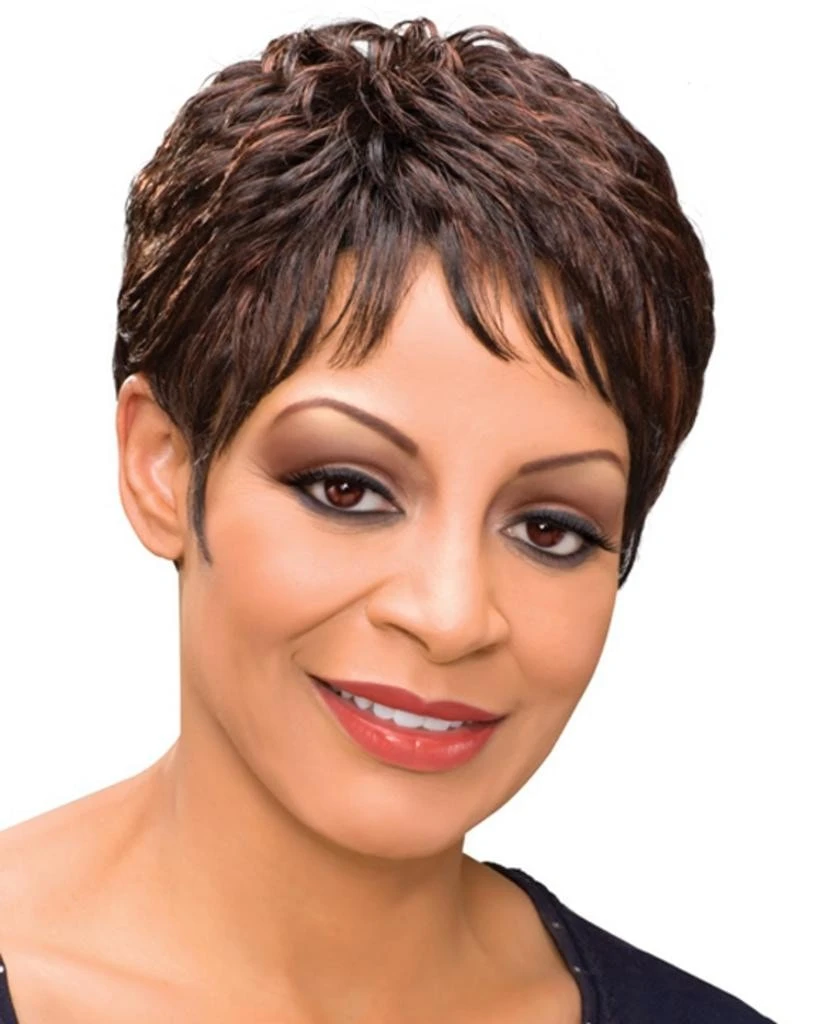Etta is with premium synthetic fibers for lightweight comfort. Machine-stitched cap fits secure and looks fabulously natural.
