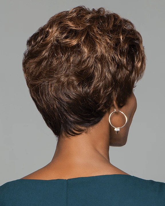 Cheer by Eva Gabor has all over layering and razor tapering that transforms this softly curled, classic short cut into a contemporary silhouette.