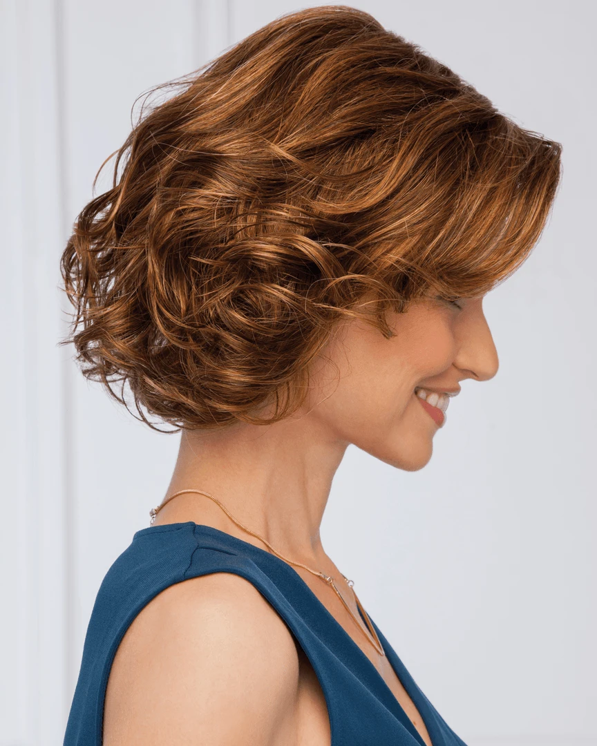 High Impact by Eva Gabor: The effect is stunning. Layered waves have natural body for a flattering shape. A face-framing eyelash bang adds the finishing touch.