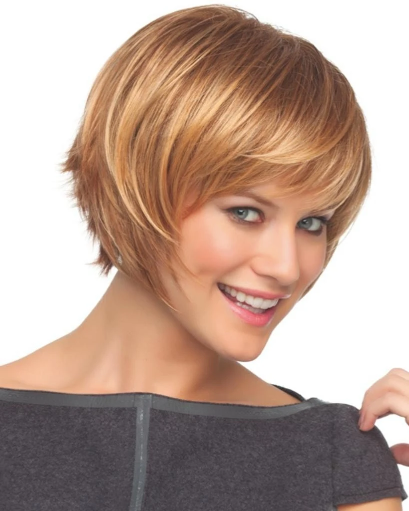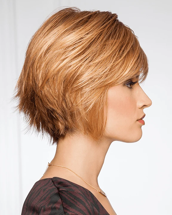 Reflecting a popular trend seen in today’s top salons, this contemporary cut combines long, sleek layers in the front and sides with layered, textured ends in the back. A quick shake right out of the box and its ready to wear! Innuendo – Short Bob Sleek Layers