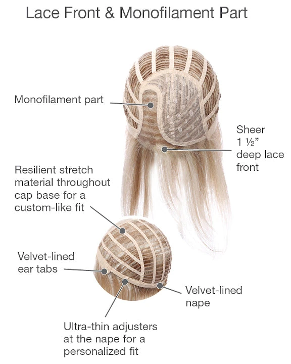 The Opulence by Eva Gabor Wigs is an elegant hair piece which is made out of synthetic fabric and looks absolutely stunning and feels completely natural. It is provided with velvet lined ear tabs and a velvet lined nape. It comes with ultra-thin adjusters for an added comfort. The Opulence Swept Angle Lace Front Mono-filament Eva Gabor Wigs is available in average cap size in a short length that extends up to the nape covering the entire crown.