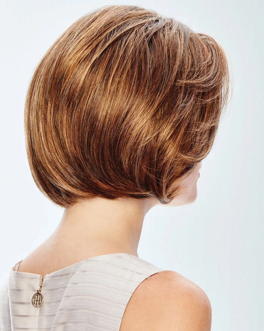 A classic collar-length page featuring a light eyelash bang with soft layers framing the face. This style offers the wearer a clean, polished, tailored look.