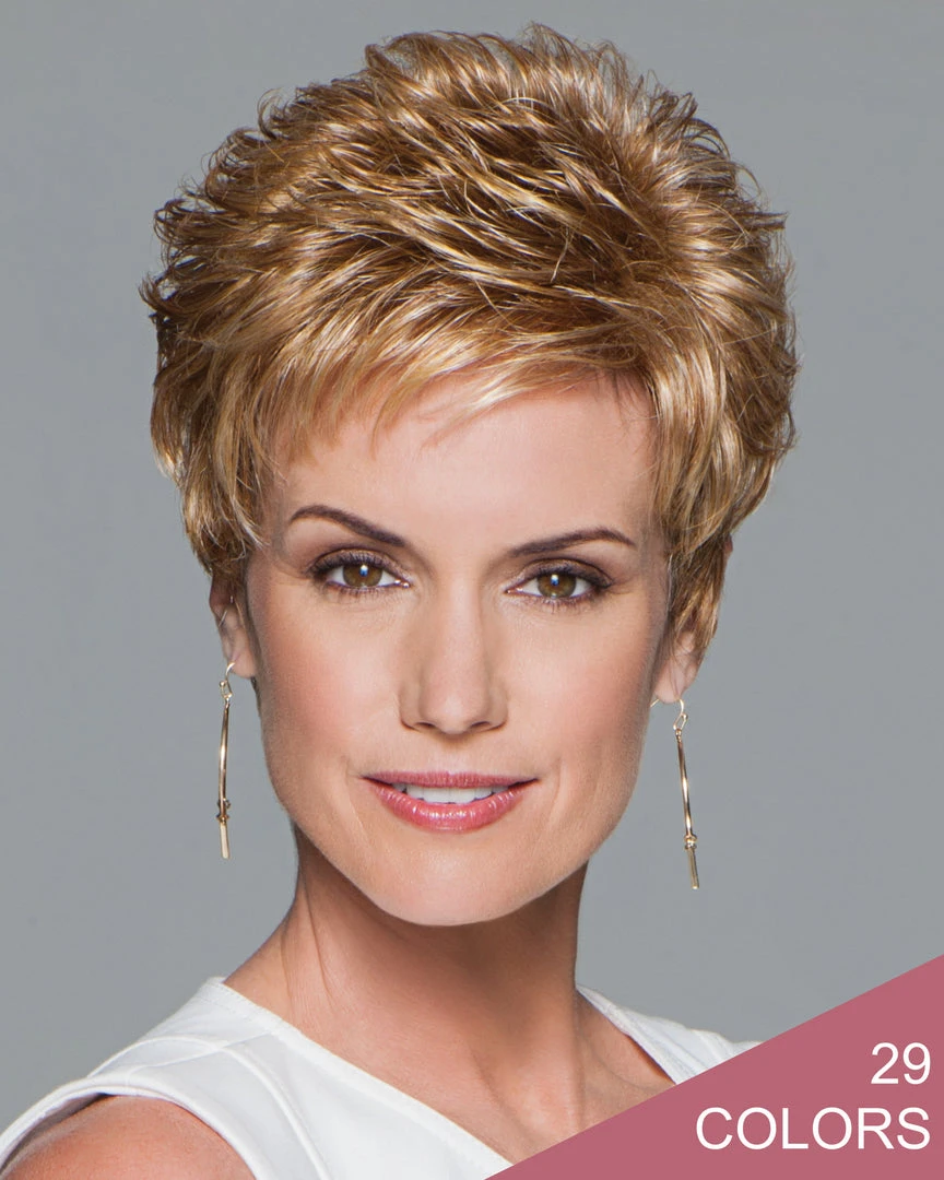 All over short layers blend into an expertly tapered, neck hugging nape. Available in two cap sizes.