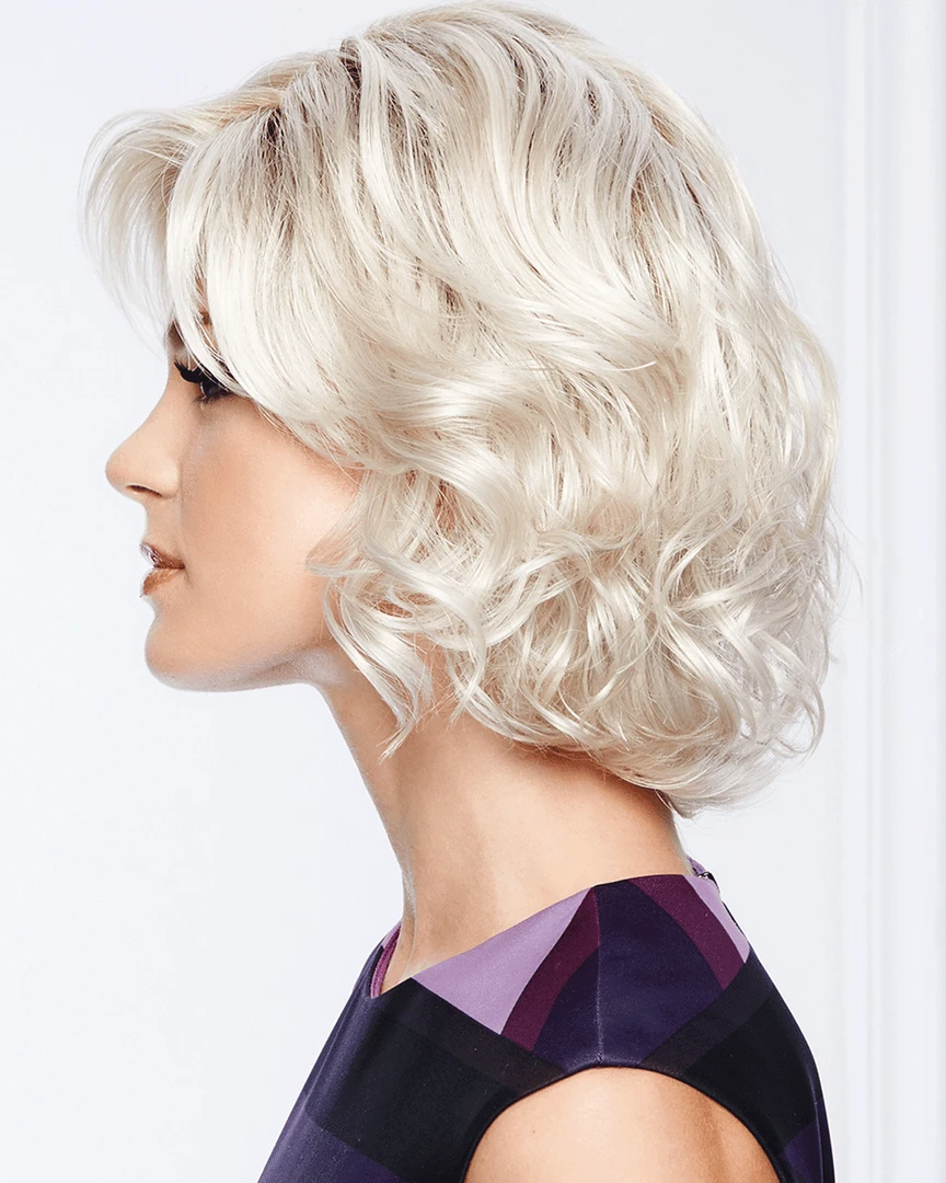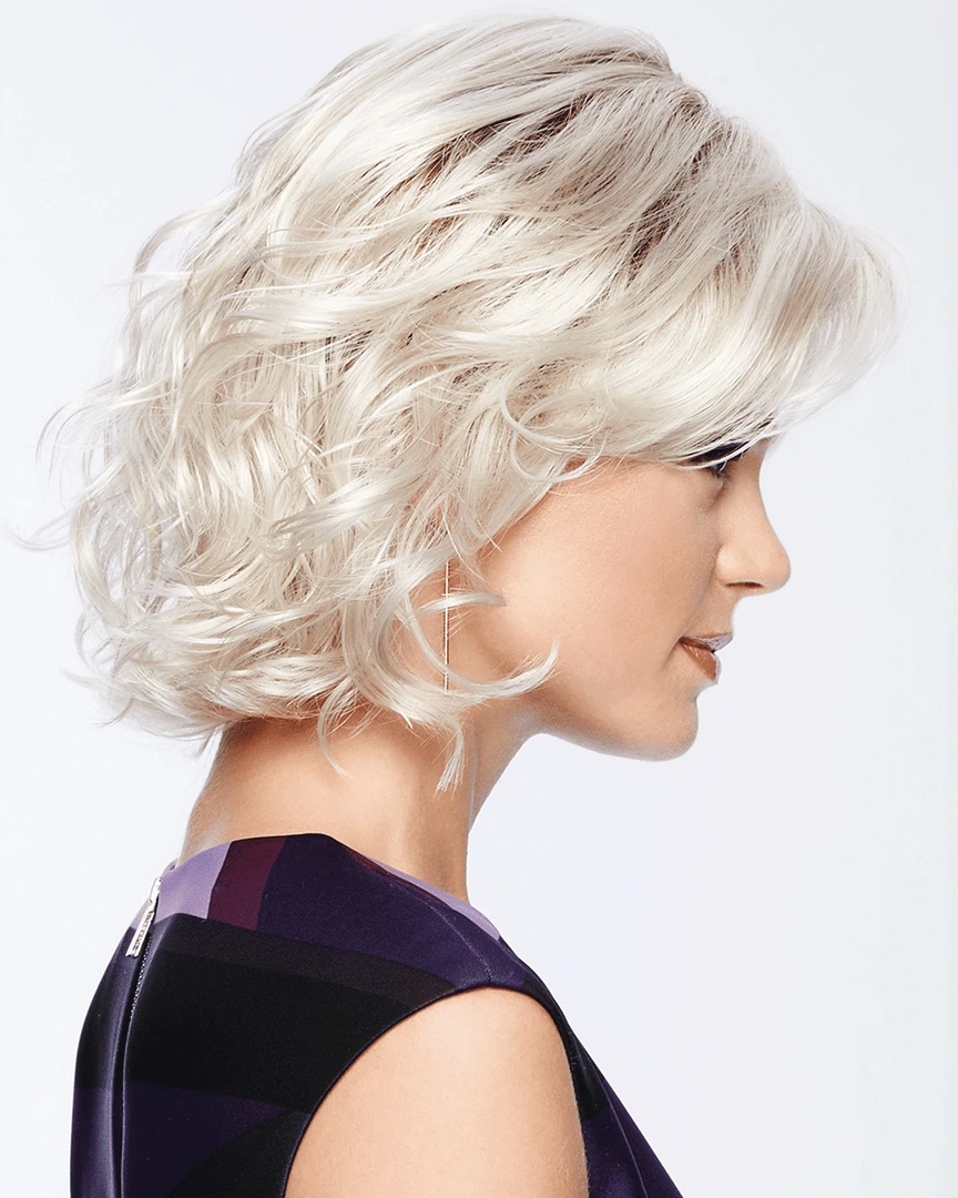 Modern Motif by Gabor. This classic bob is modernized with textured waves. An eyelash bang graces the front to add an air of flirtation, while softly layered lengths throughout offer fullness and movement. The temple-to-temple sheer lace front with a monofilament part allows for off-the-face styling and guarantees a light, comfortable fit and natural look.