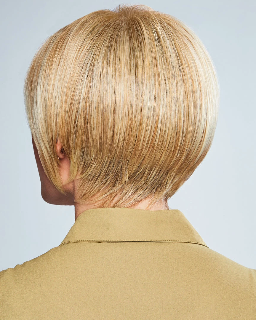 Thrill by Gabor. An updated, tapered bob with softly textured layers in the monofilament crown for volume and movement through the top. Longer side layers can be worn forward or tucked behind the ears. The finishing touches: a flirty bang and a neatly sculpted, form-fitting nape.