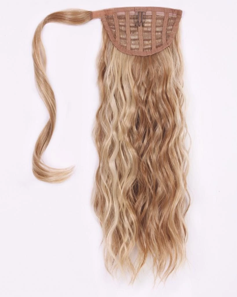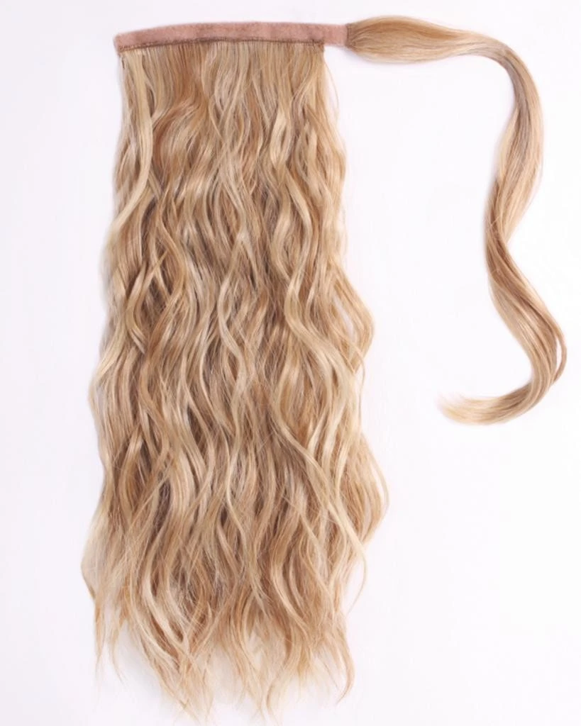 This 18″ long wrap-aroung pony reflects the latest salon trend toward soft, tousled beach hair waves, and the wrap-around provides a totally polished look.