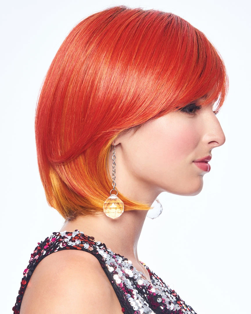The Fierce Fire Wig by Hairdo embraces your fierceness in shades of flaming orange. This sassy silhouette blazes a new trail with a vivid color blend that’s all fired up with no intention of fading. It’s your new go-to style whenever you’re in the mood to look smokin’ hot.