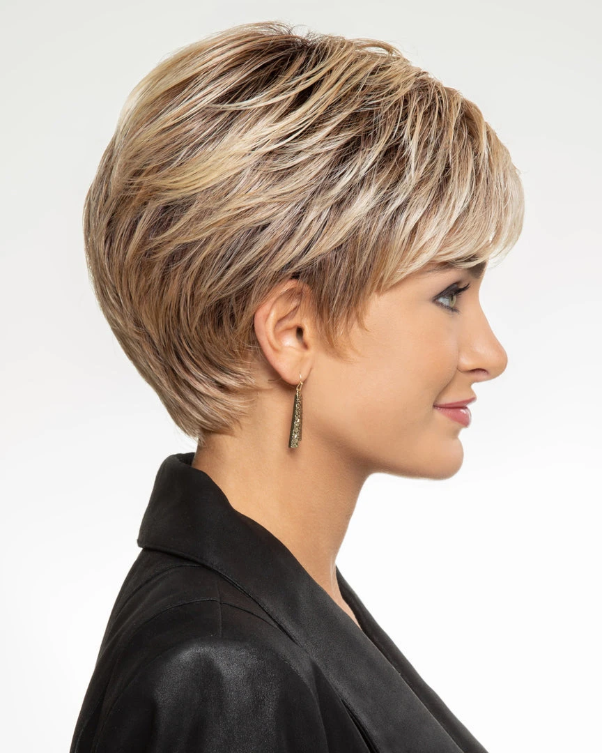 The Glamour Pix by Hairdo. This short, layered pixie has a light, wispy texture that allows for multiple styling options from soft and subtle to spikey and piecey. The razor-cut sides and tapered neck make this a cool and easy choice. Curl or flat iron the heat-friendly Tru2Life fiber to achieve your desired look.