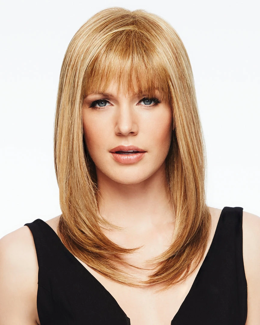 Long and Straight wig by HairDo. One of today’s top hairstyle trends with below-the-shoulder length, razor-tapered layering at the ends for natural movement, plus a feathered eyelash bang. A look that’s impossible for many women to accomplish on their own due to fine, fragile hair, or without the effort and damage of flat ironing. Hairdo not only makes it possible, they make it effortless.