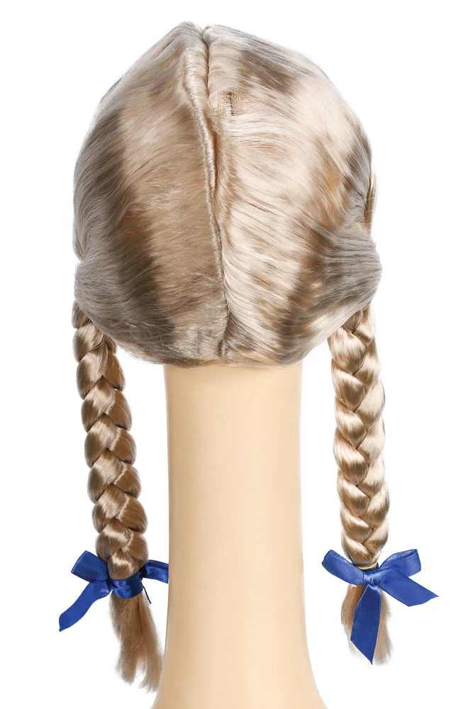 The Banged Special Bargain Braided wig has long braids with ribbons at the ends and comes with bangs, made in a less expensive fiber.