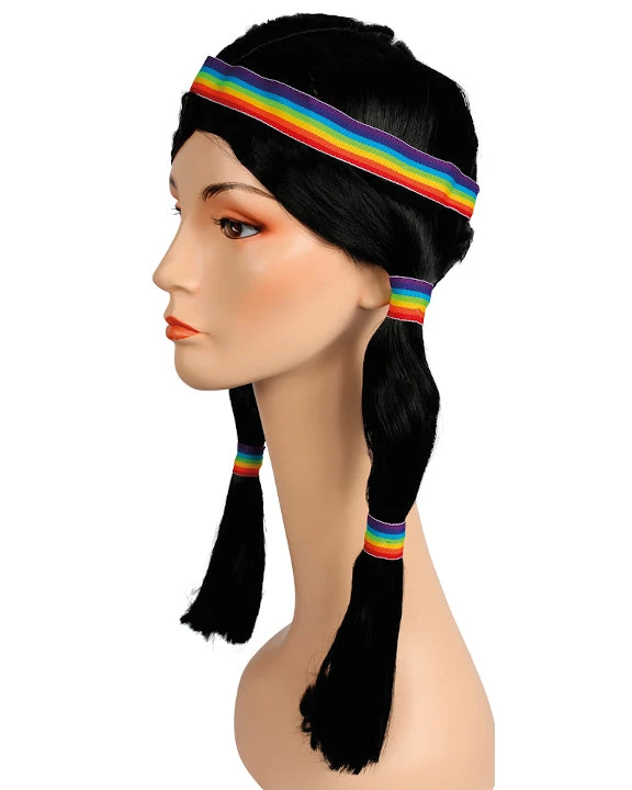 Bargain Indian Girl Costume Wig with Bands. Popular-priced black Indian wig with Indian bands around the wig. LW281