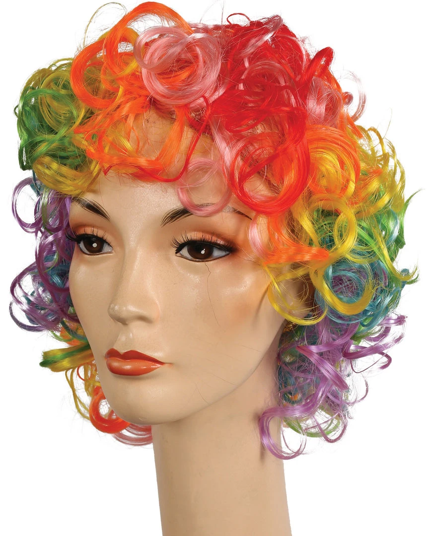Deluxe Version – This curly clown wig is a new shag curl style in a shoulder length cut. Deluxe Curly Clown Lacey Costume Wig