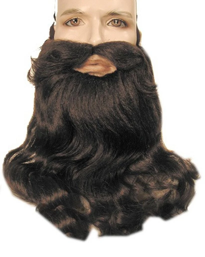 On a strap with a wired mustache this is a great long beard and full mustache that is slightly wavy. Deluxe Hillbilly Santa Orthodox Beard Mustache Set Lacey Costume. (Spirit gum adhesive sold separately.)