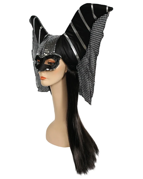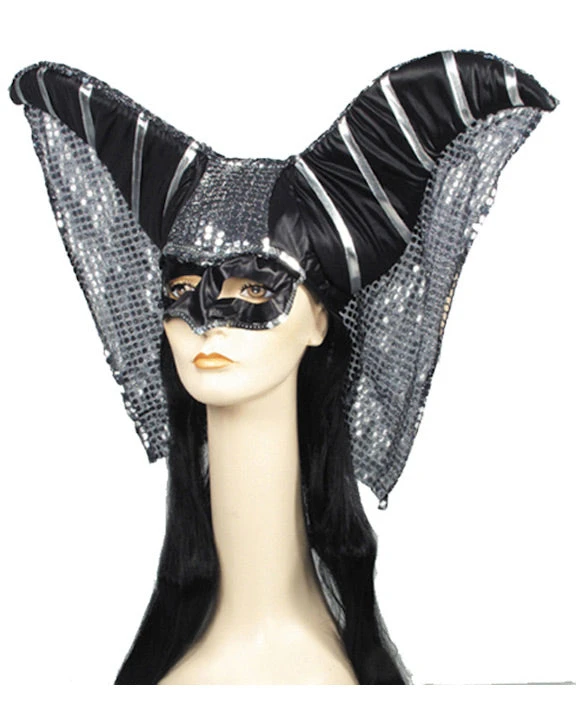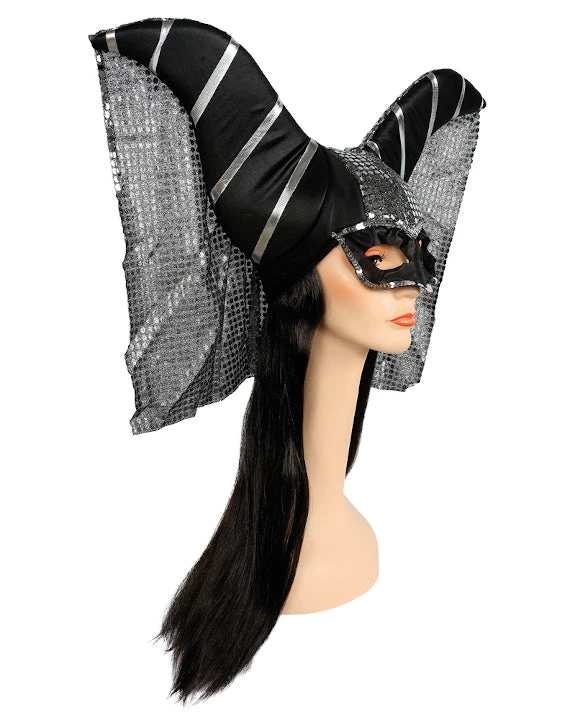 Deluxe Magic Witch Headpiece. Elaborate headdress with glittery jewels, draped fabric and black hair. LW460