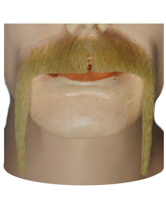 Human hair, hand tied to fine lace. Our mustaches, beards and sideburns are extremely natural in appearance. (Spirit gum adhesive sold separately.)