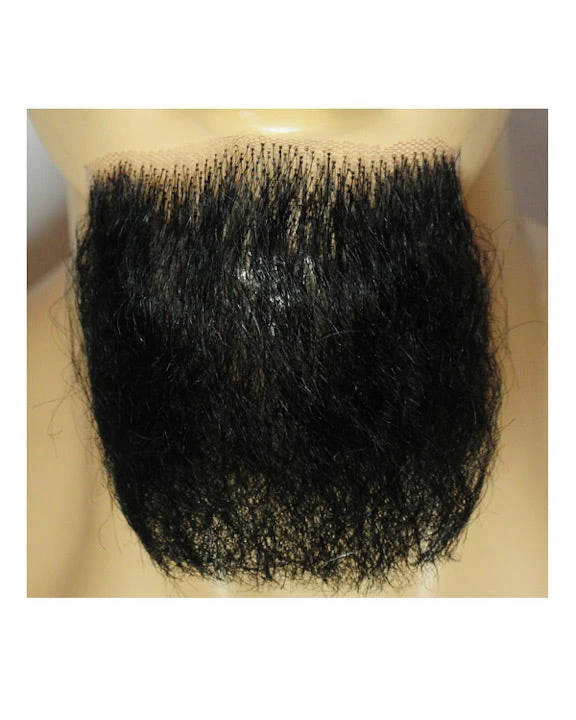 Human hair, hand tied to fine lace. Our mustaches, beards and sideburns are extremely natural in appearance. (Spirit gum adhesive sold separately.) Kinky 3 Point Human Hair Goatee HX2 Pirate Beard  LW424Â