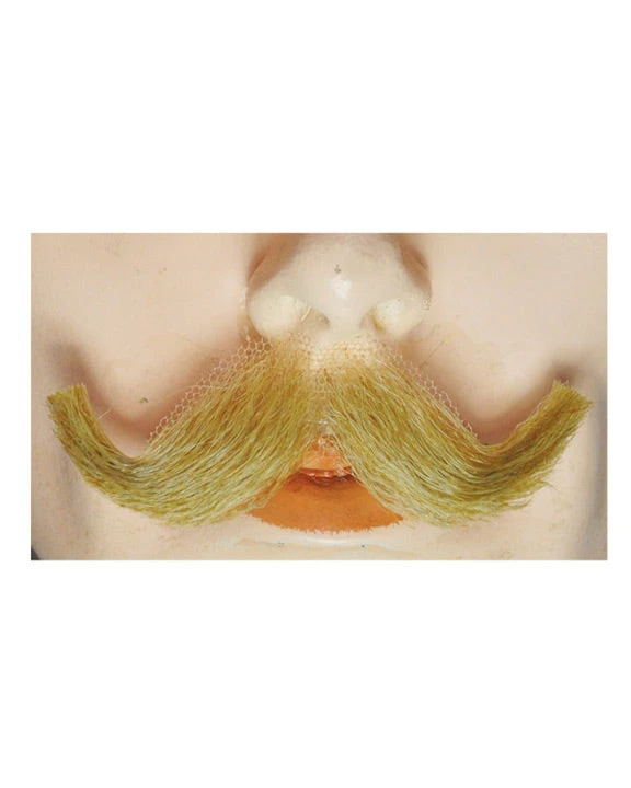 A reasonably priced hand-made mustache with a human hair blend. Most people won’t be able to tell between this version and the more expensive human hair counterparts. This mustache is that good looking. Â (Spirit gum adhesive sold separately.) Â Small English M10 Synthetic/Human Blend Handmade Mustache. LW427