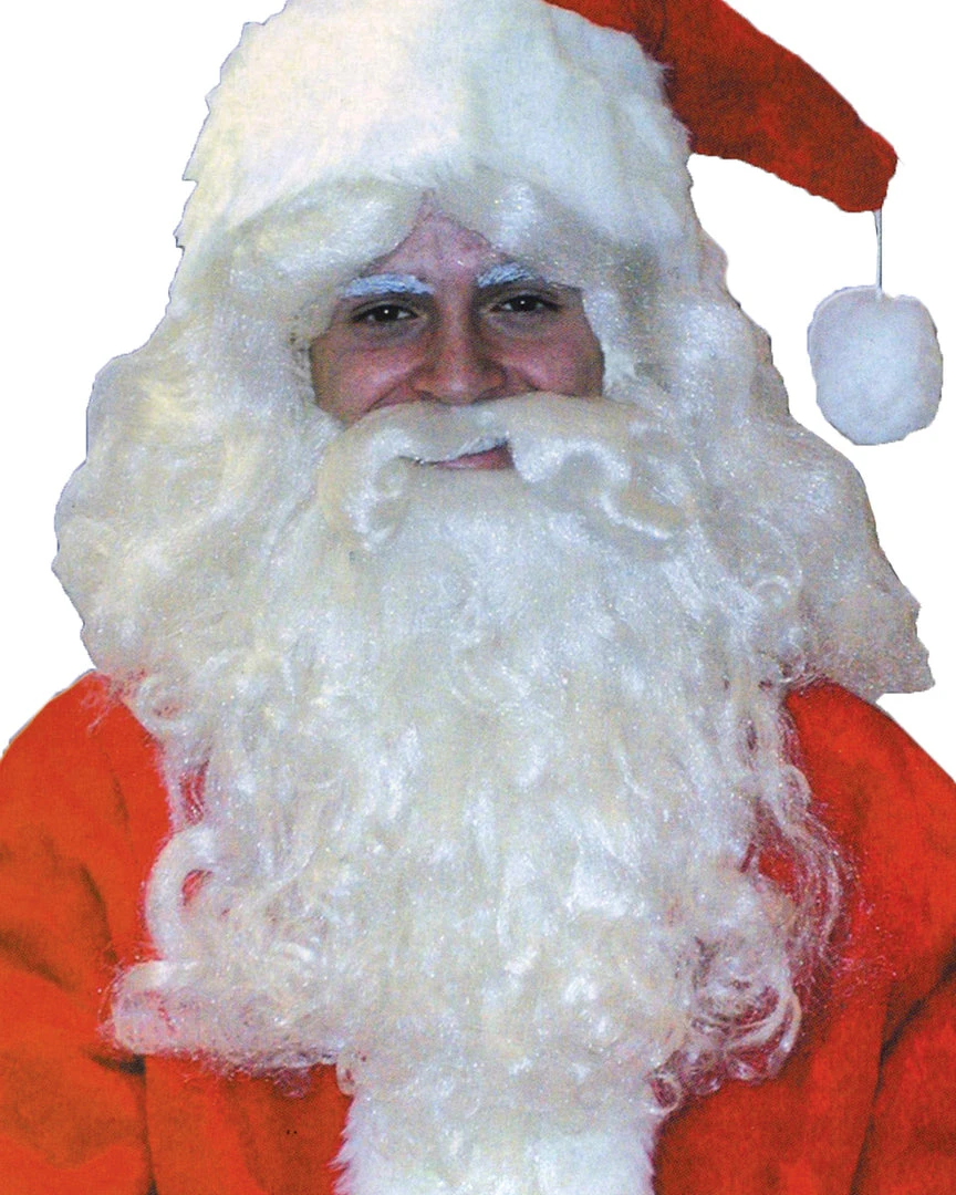 Deluxe Santa Wig And Beard. Natural color. Synthetic fiber. Fully washable. Very full wig and beard. Care instructions: hand wash in luke warm water about 70 degrees with hair conditioner for 5 minutes. Do not wash in temperature over 80 degrees..if so the hair will tangle and frizz. 2 piece set; wig and beard are not attached.