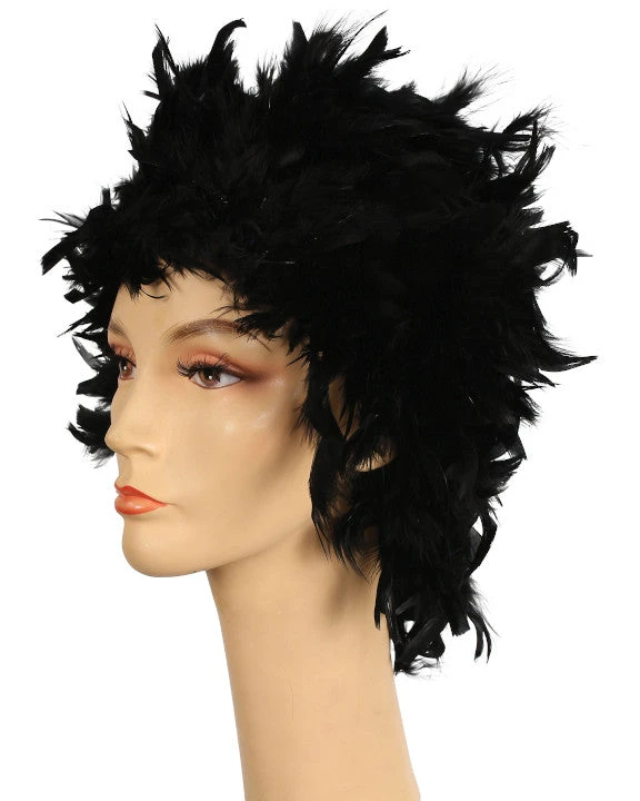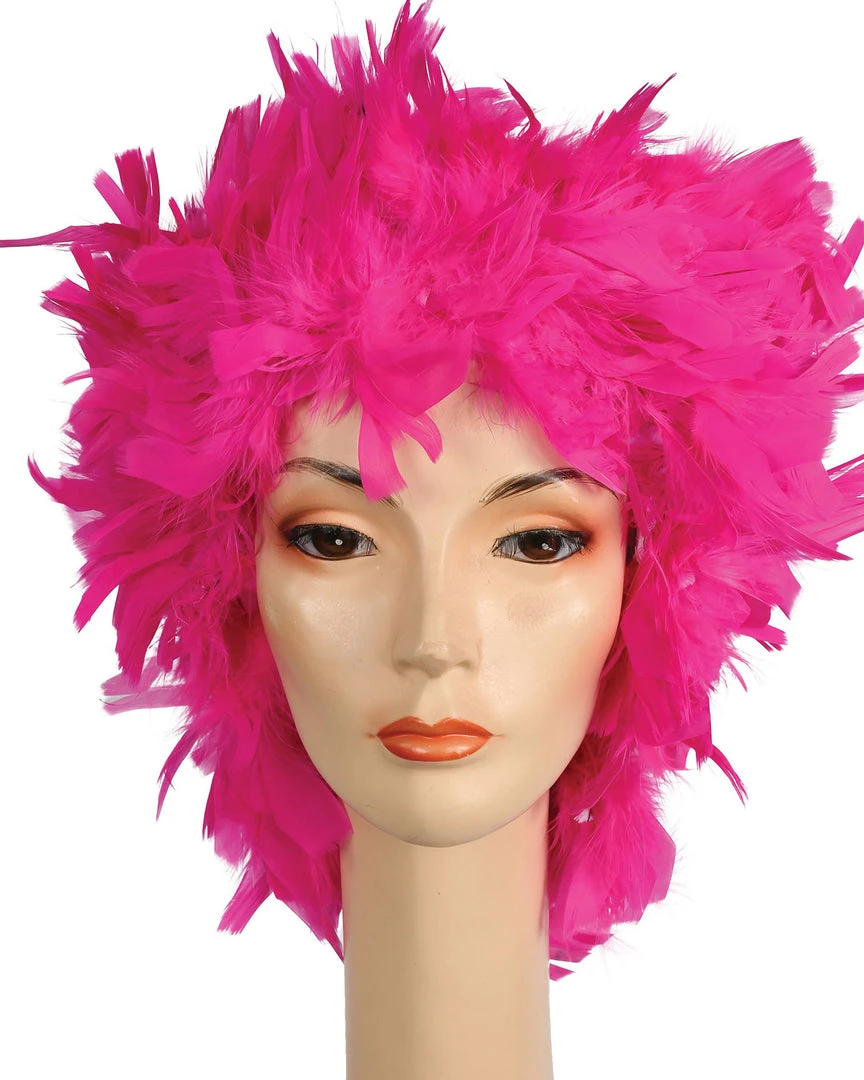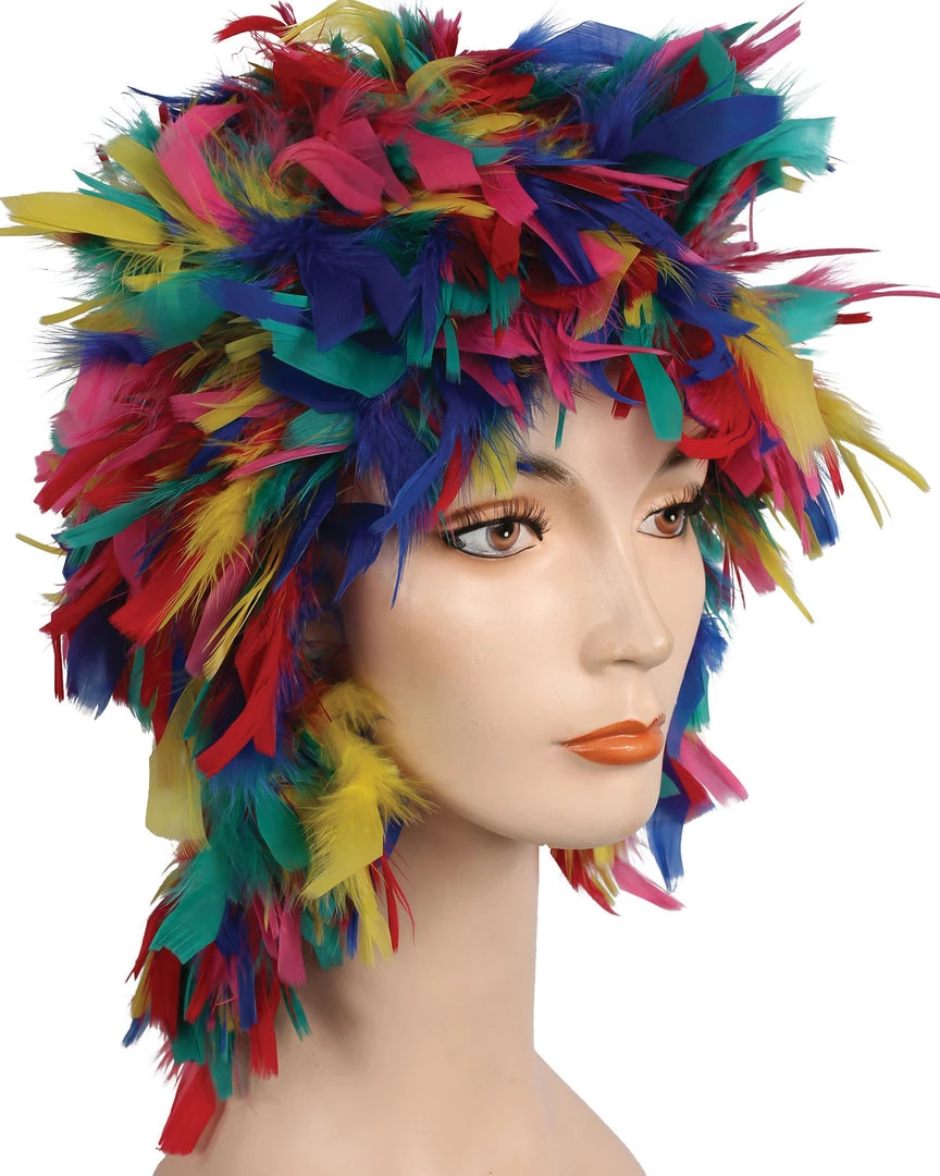A wonderful new idea in clown wigs. Â Also good as a Phylis Diller ’60s style. Feather Clown Showgirl Mardi Gras Lacey Costume Wig