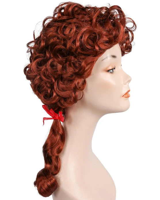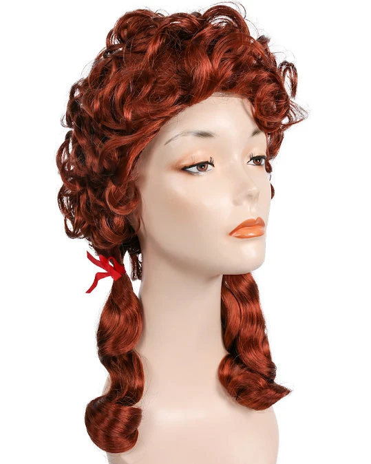 Frontier Girl. Youthful historical style in good fiber,with braids and colorful ribbons. LW496
