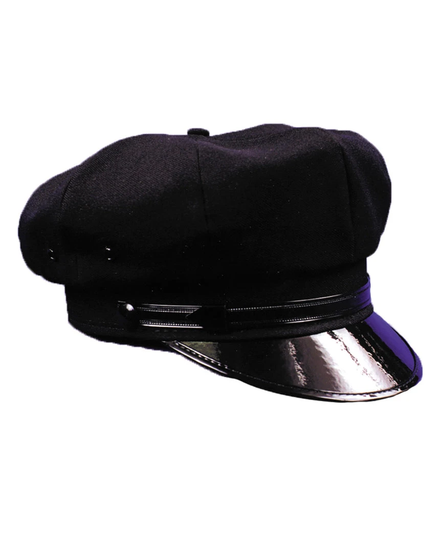 Chauffeur Hat. Quality black cloth hat with vinyl bill and band.