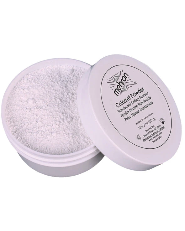 Colorset Powder 1 Oz. Traditional colorset setting powder has a super absorbent, neutral translucent formula perfect for setting any cream makeup. To use: Apply liberally to a powder puff and press powder into the makeup to absorb excess moisture. Dust off excess with a powder brush. Remove with Makeup Remover followed by soap and water. Not tested on animals. 2 oz round plastic container with screw-on lid. Not carded.